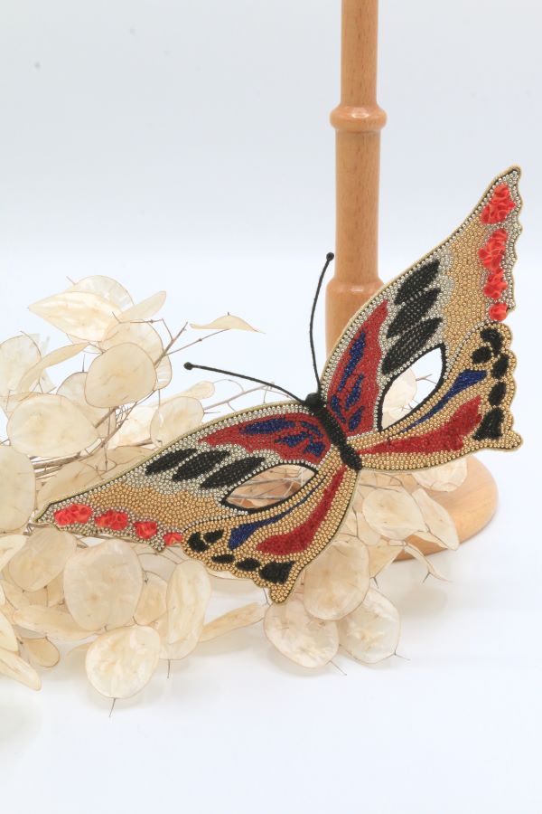 Chaque loup propose un mixte de techniques mêlant strass, broderie main et broderie au crochet de Lunéville. L’avant du masque est brodé sur un organza de soie qui peut être peint suivant les modèles, et un fil de fer lui donne de la tenue. L’arrière est en suédine pour le masque noir, en soie pour le masque fleuri rose-oranger, et en toile métis pour les autres. Deux fixations vous sont proposées : soit deux rubans pour nouer le masque à l’arrière de la tête ou soit des rubans de chaque côté du masque pour le nouer sur des branches de lunettes.
